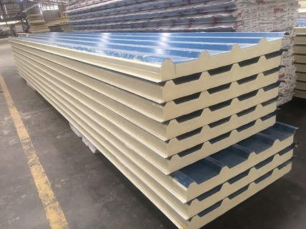 High strength to weight ratio at low temperatures, Self-supporting metal panels insulated with CFC free polyurethane for pitched roof, with a minimum slope of 7% used in industrial & commercial buildings and refrigerated warehouses, its used for roofing and wall cladding.
